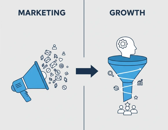 Piénsalo de esta manera: el marketing sin una estrategia de growth es un gasto con resultados inciertos, como gritar con un megáfono a una tienda con la puerta cerrada. El growth sin un buen marketing es ciego, porque no tiene suficiente tráfico para analizar y optimizar.