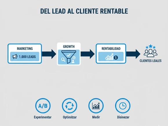 Mientras marketing impulsa el volumen en la entrada, growth garantiza que cada euro invertido se traduzca en clientes rentables y a largo plazo.