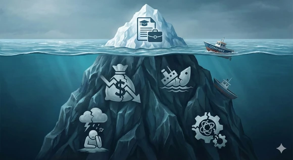 Un CV es un documento de marketing. Te dice lo que la persona quiere que sepas, no quién es realmente. Un proceso de selección interno, a menudo saturado y sin herramientas de evaluación profunda, se queda en la superficie del iceberg (experiencia y estudios), ignorando la parte sumergida que realmente importa: actitud, resiliencia y fit cultural.
